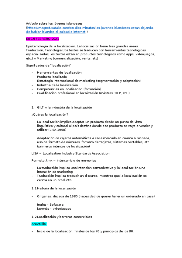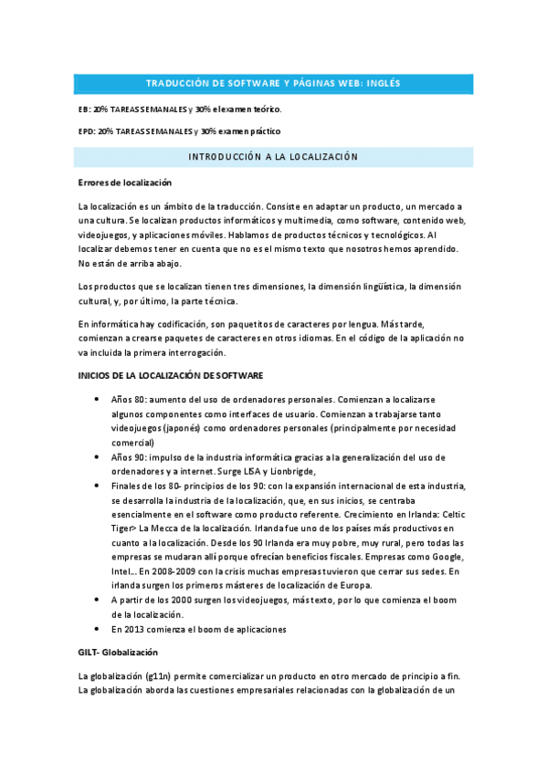He publicado nuevos apuntes de 3º Traduccion de Software y Paginas Web B. Ingles: TSPW INGLÉS - DOSIER LOCALIZACIÓN