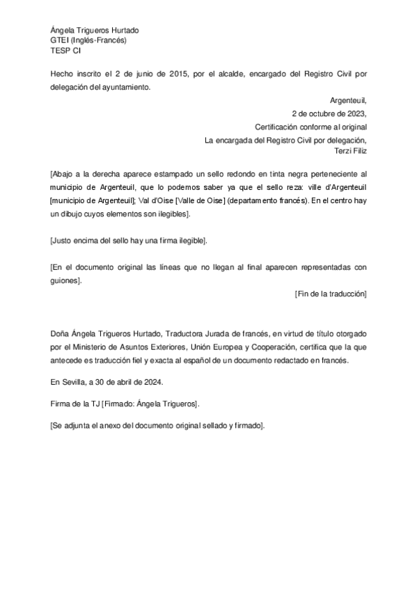 He publicado nuevos apuntes de 3º Traducción Especializada C I. Francés: TE FRANCÉS CI - CERTIFICADO DE MATRIMONIO