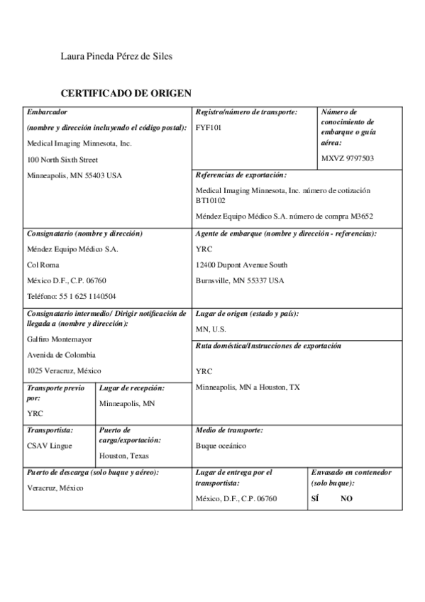 Examen + certificado origen