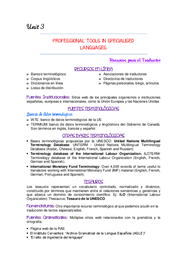 He publicado nuevos apuntes de 4º Traducción Profesional y Académica Inglés-español: RESÚMENES COMPLETOS Y POR UNIDAD