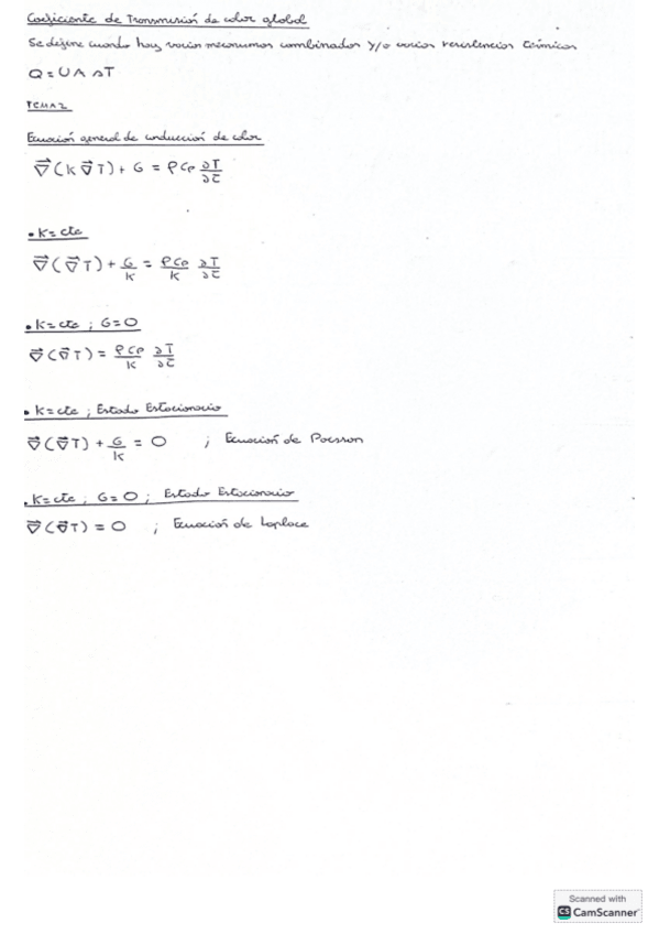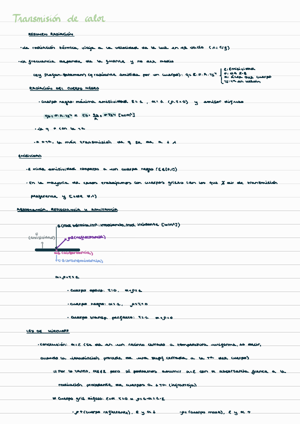 Resumen de los apuntes de la asignatura de Trasmisión de Calor.