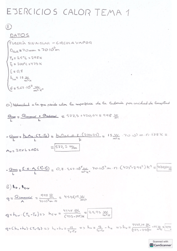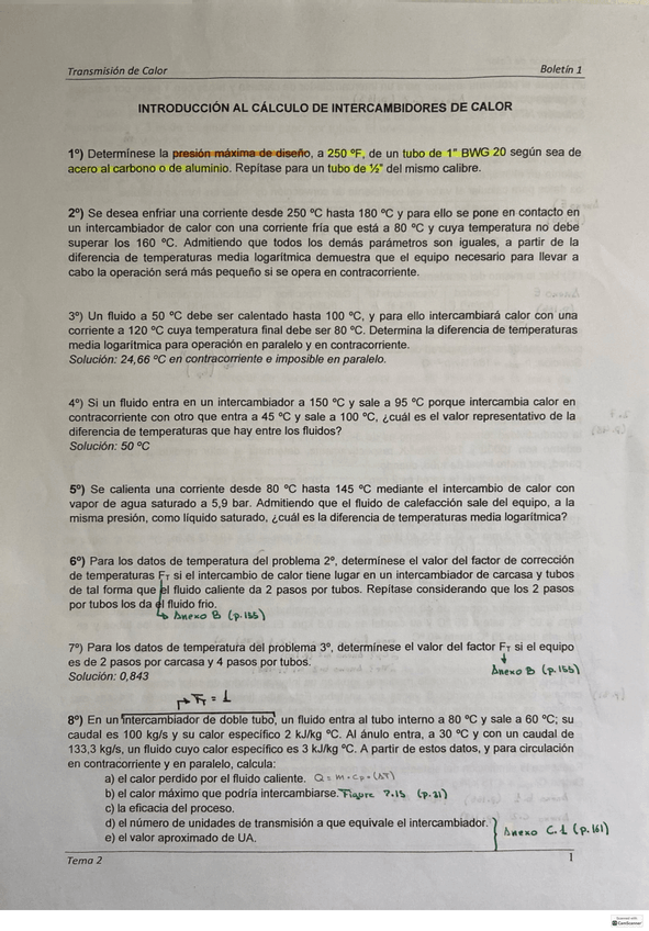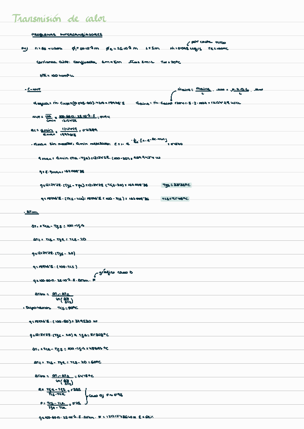 Apuntes o Ejercicios Transmisión de Calor