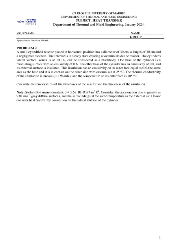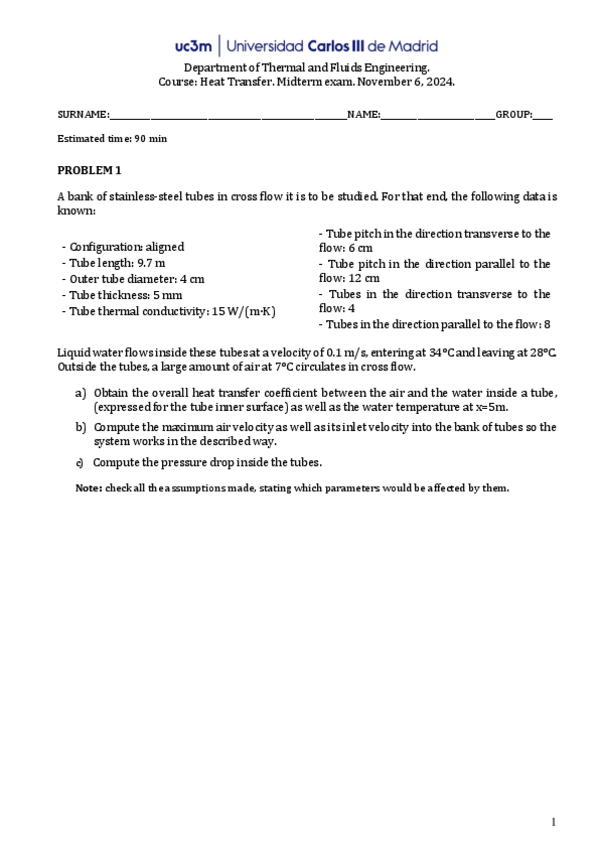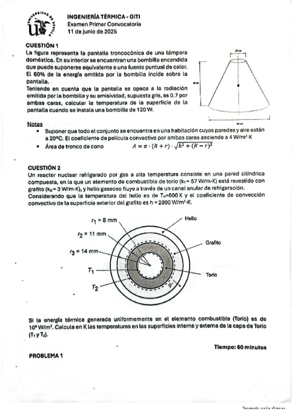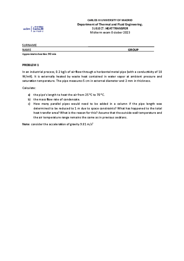 He publicado nuevos apuntes de 2º Transmisión de Calor: EXAMENES PRIMER PARCIAL