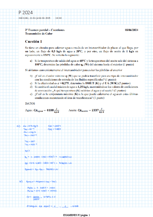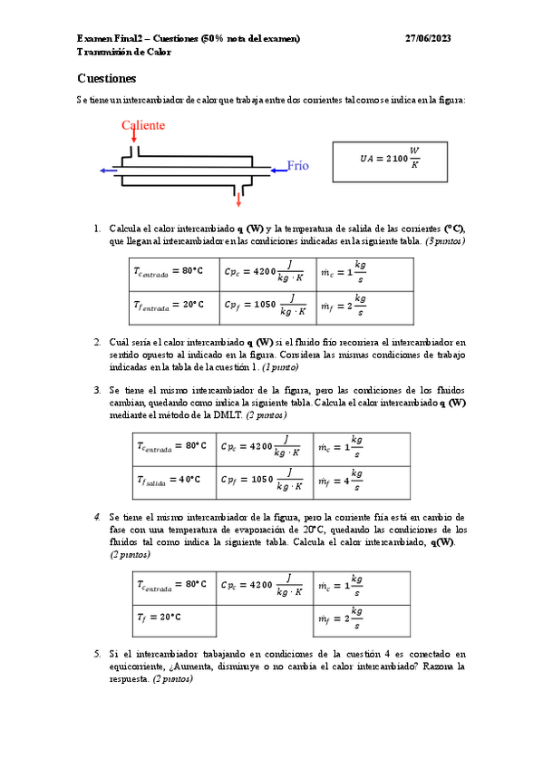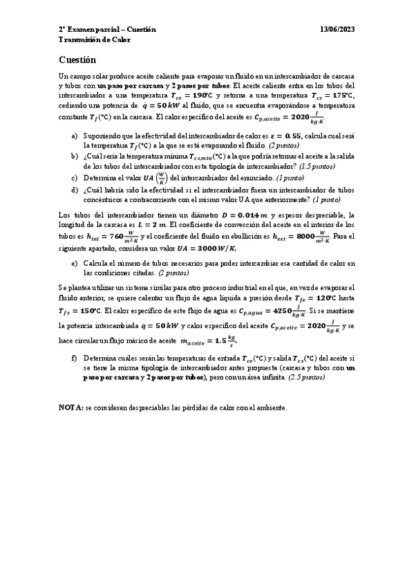 He publicado nuevos examenes de 2º Transmisión de Calor: TrCal: Examenes 1 parcial