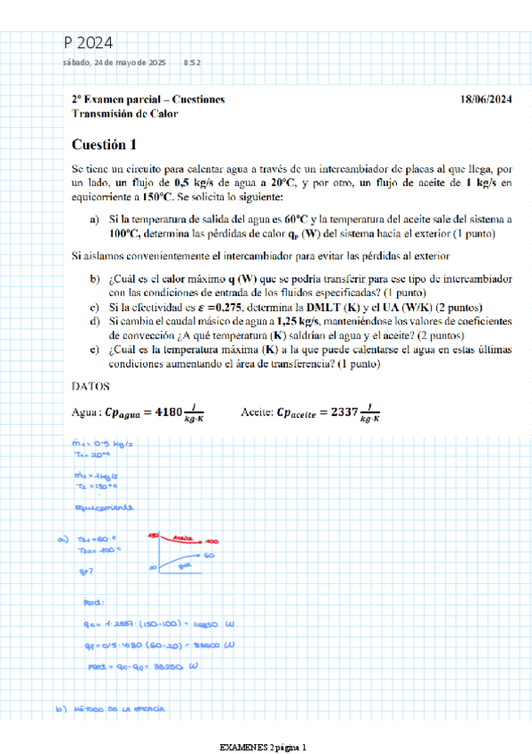 He publicado nuevos apuntes de 2º Transmisión de Calor: EXAMENES PRIMER PARCIAL