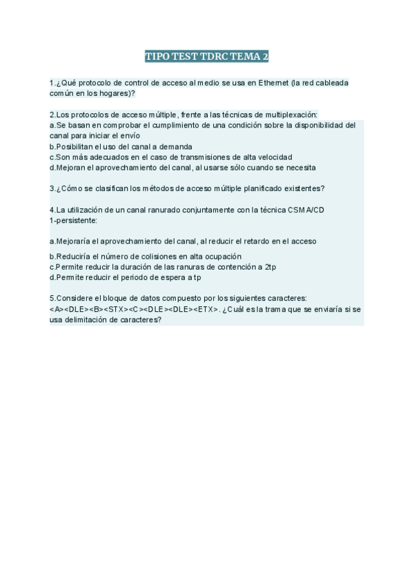 He publicado nuevos apuntes de 3º Transmisión de Datos y Redes de Computadores: Teoria-TDRC-test-resueltos.pdf