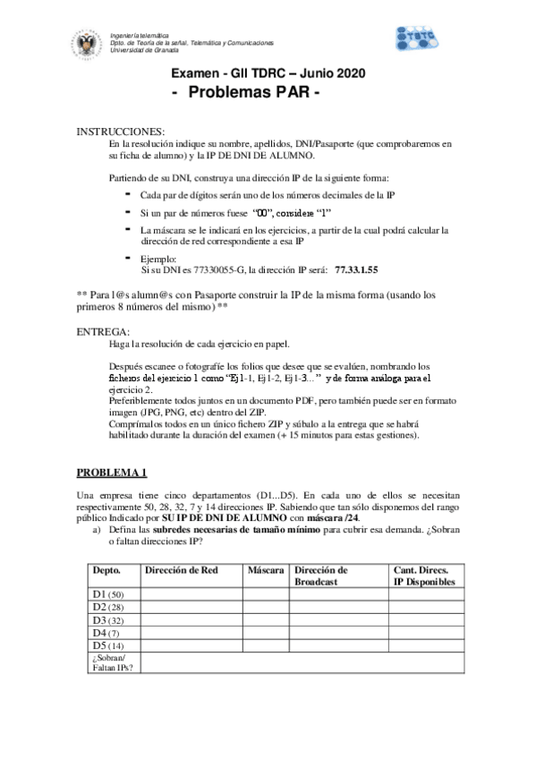 He publicado nuevos examenes de 3º Transmisión de Datos y Redes de Computadores: ProblemasPAR.pdf