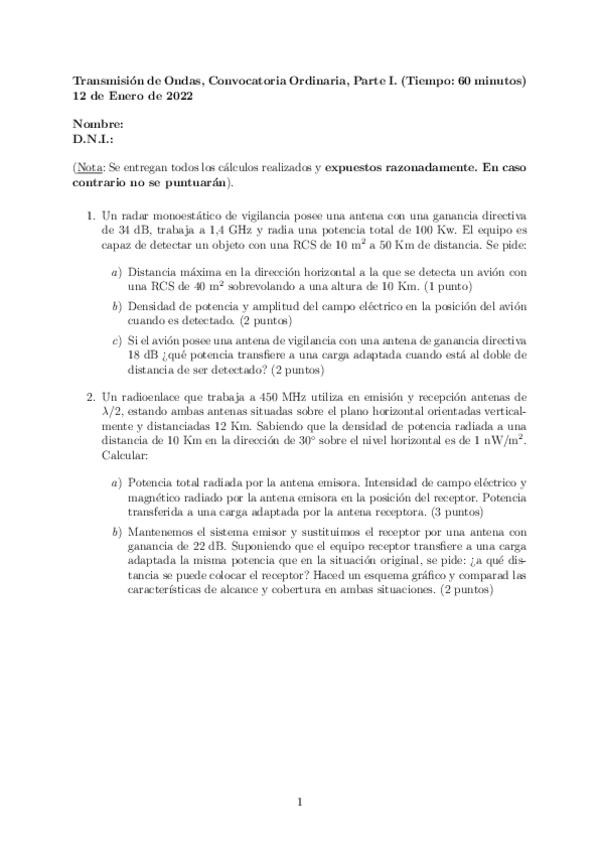 He publicado nuevos examenes de 2º Transmisión de Ondas: PREGUNTAS DE TEORÍA QUE CAEN SEPARADAS POR PARCIALES (NOTA:10)