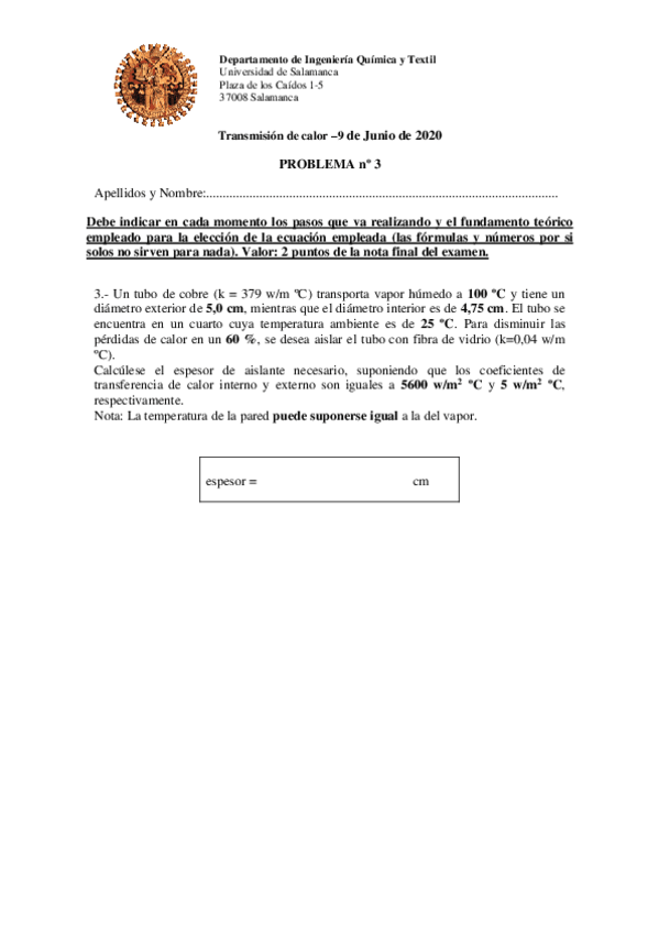 He publicado nuevos apuntes de 2º TRANSMISIÓN DEL CALOR: 2-ejercicio-ExamTransm-CalorJunio-2020.pdf