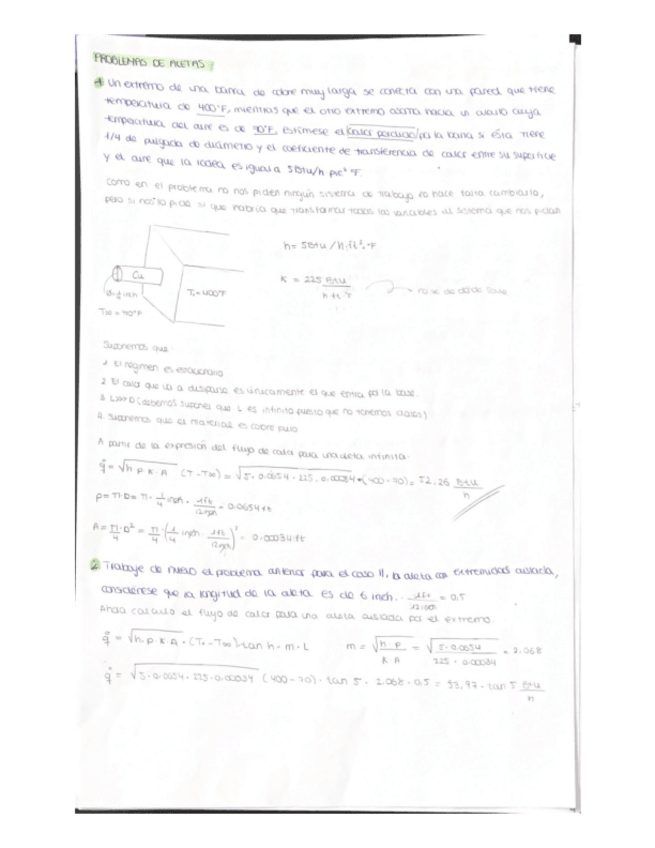 problema de examen aletas y repaso de la transferencia de calor en régimen transitorio