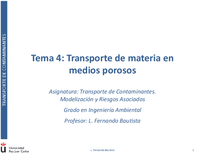 He publicado nuevos apuntes de 3º Transporte de contaminantes: modelización y riesgos asociados: TCMRATema-4TM-medios-porosos.pdf
