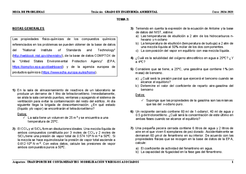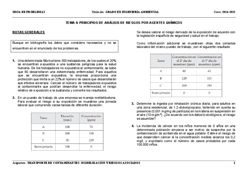 He publicado nuevos ejercicios de 3º Transporte de contaminantes: modelización y riesgos asociados: ejercicios-parcial-1-t2-t4.pdf