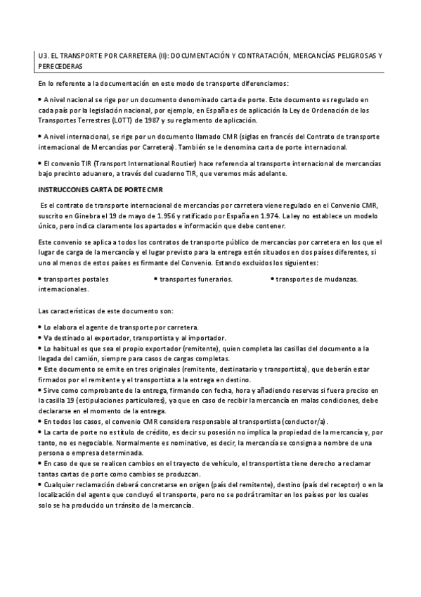 U3. EL TRANSPORTE POR CARRETERA (II): DOCUMENTACIÓN Y CONTRATACIÓN, MERCANCÍAS PELIGROSAS Y PERECEDERAS