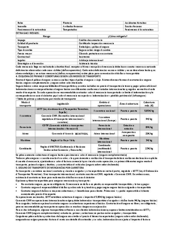 Apuntes muy completos sobre el tema de los seguros en Transporte internacional de mercancias.