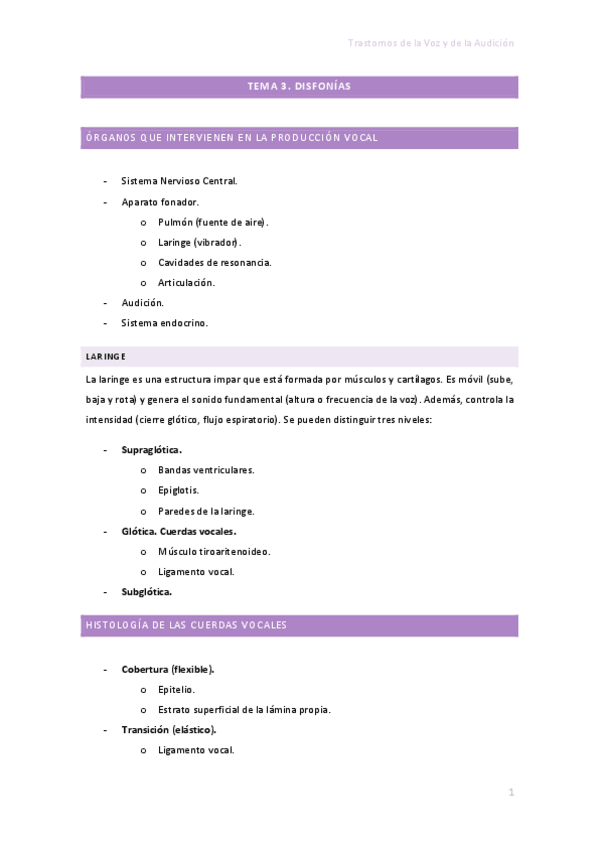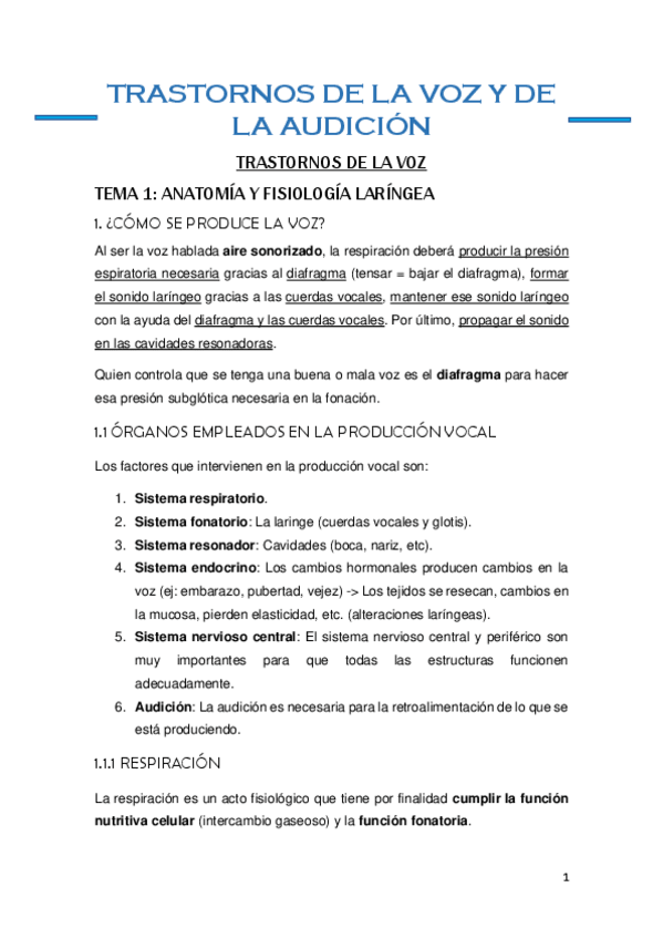 He publicado nuevos apuntes de 4º Trastornos de la Voz y de la Audicion: Trastornos de la voz y la audición