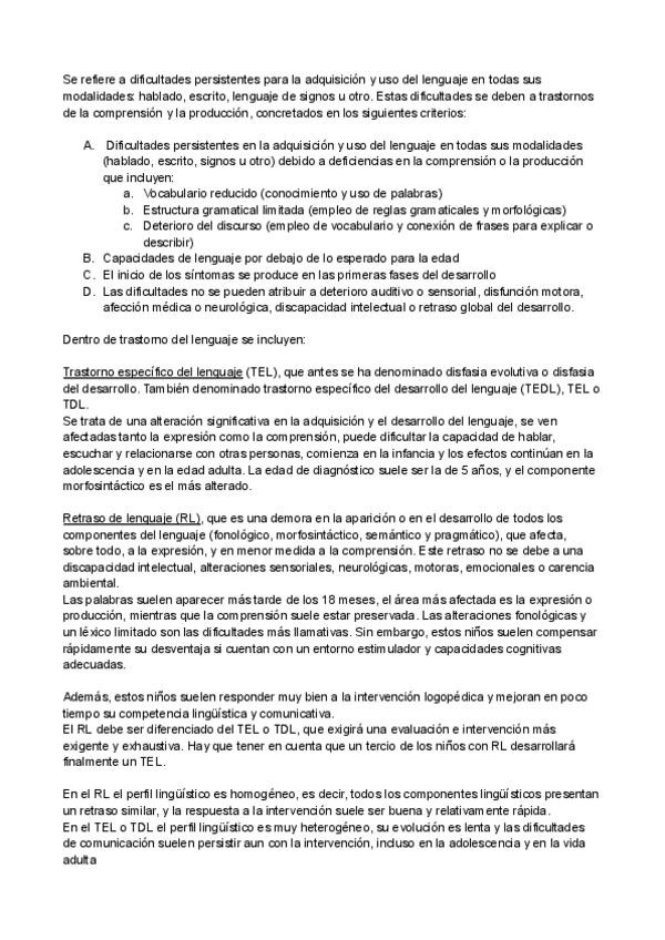 He publicado nuevos apuntes de 2º Trastornos del Desarrollo del Lenguaje I: Trastornos.pdf