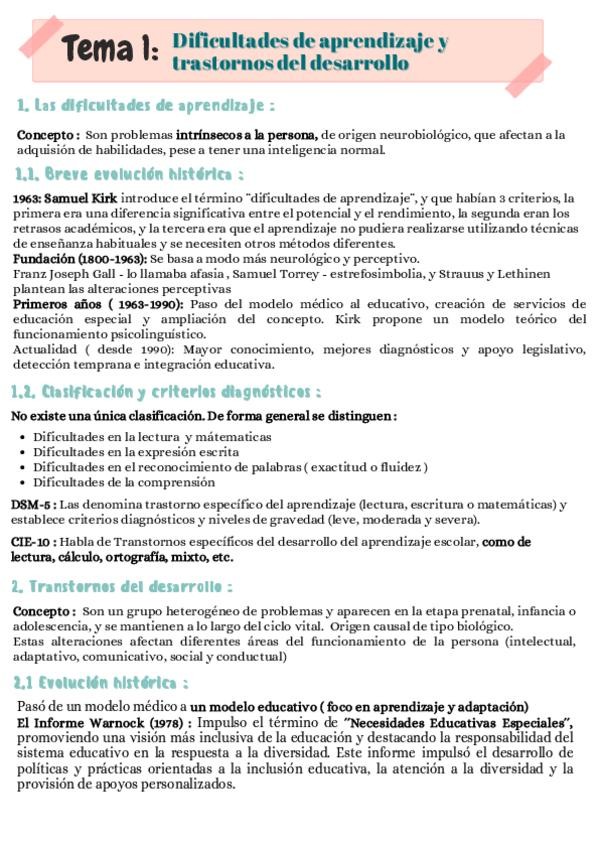 Temario completo del Tema 1 al Tema 18 de Transtornos del Desarrollo y Dificultades de Aprendizaje
