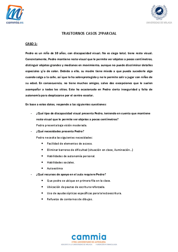 Casos Prácticos Temas 1, 2 y 3. Trastornos del Desarrollo y Dificultades de Aprendizaje. Pueden caer en el primer parcial de la asignatura.