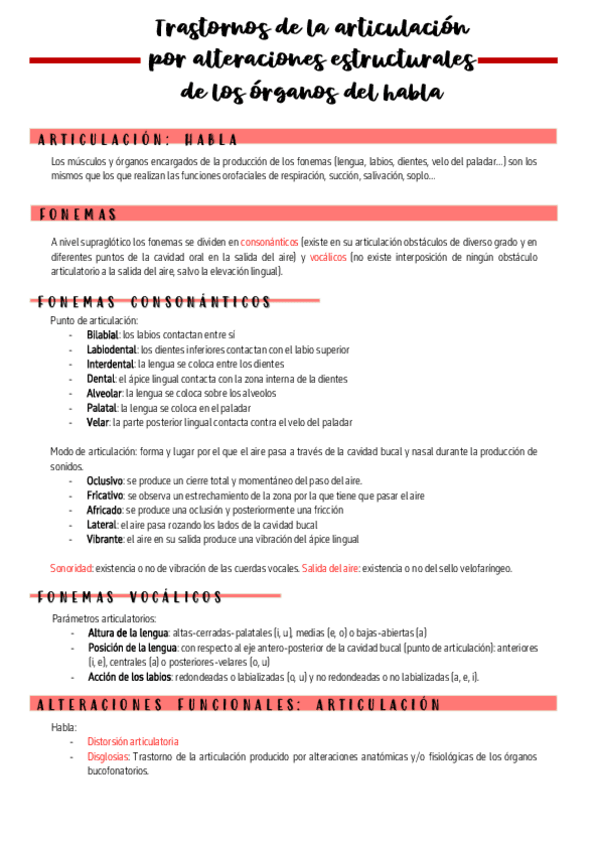 Trastornos de la articulación por alteraciones estructurales de los órganos del habla