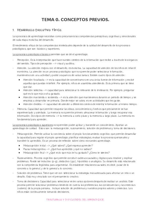 Apuntes completos asignatura Trastornos y dificultades del aprendizaje