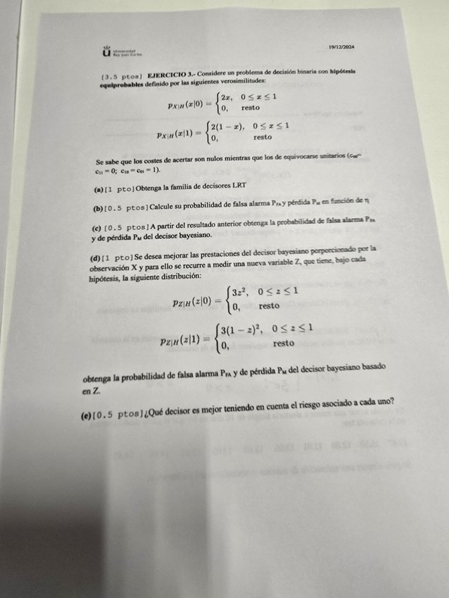 Enunciados y soluciones de ejercicios de estadística, estimadores y decisores