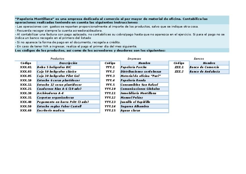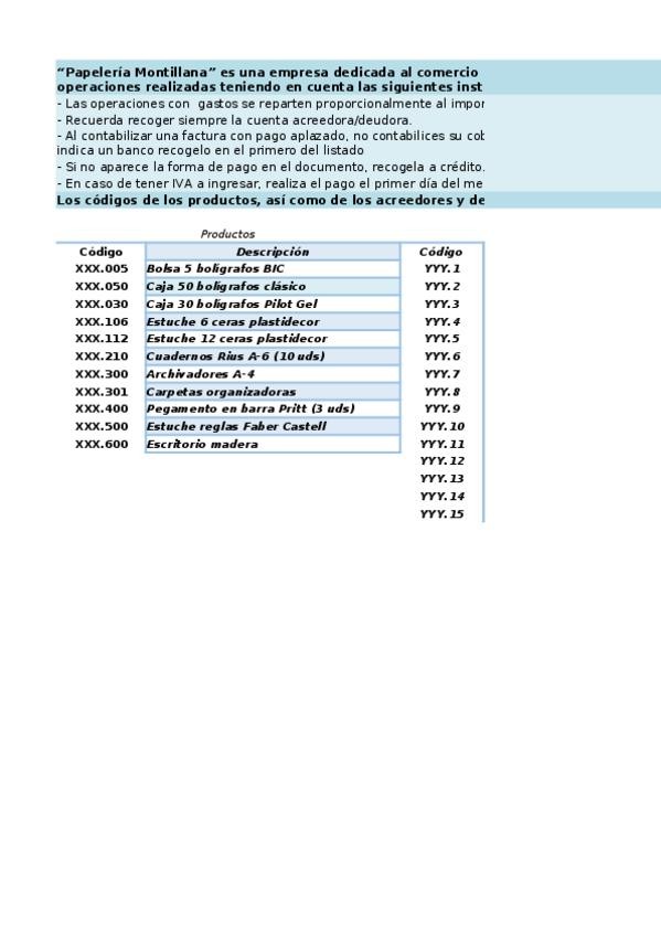 He publicado nuevos ejercicios de Tratamiento de la Documentación Contable: Supuesto-9-Papeleria-Montillana.xlsx