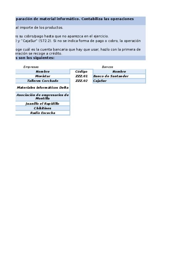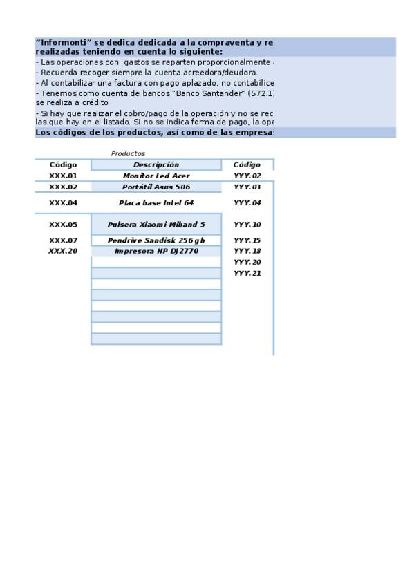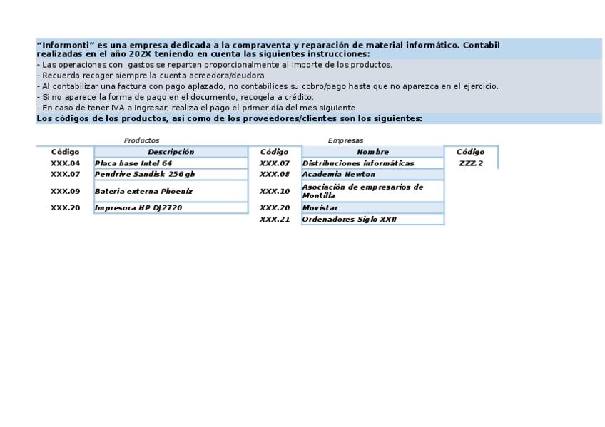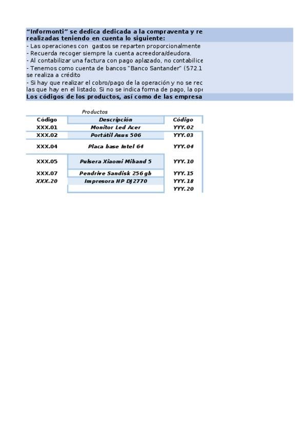 He publicado nuevos ejercicios de Tratamiento de la Documentación Contable: Supuesto-13-Informonti.xlsx