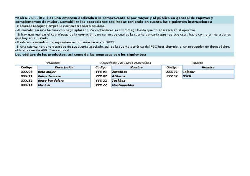 He publicado nuevos ejercicios de Tratamiento de la Documentación Contable: Supuesto-22-KZT.xlsx