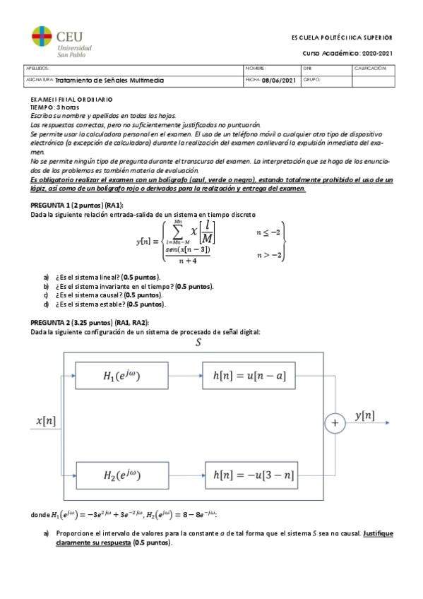 He publicado nuevos examenes de 3º Tratamiento Digital de la Señal: examenes tds