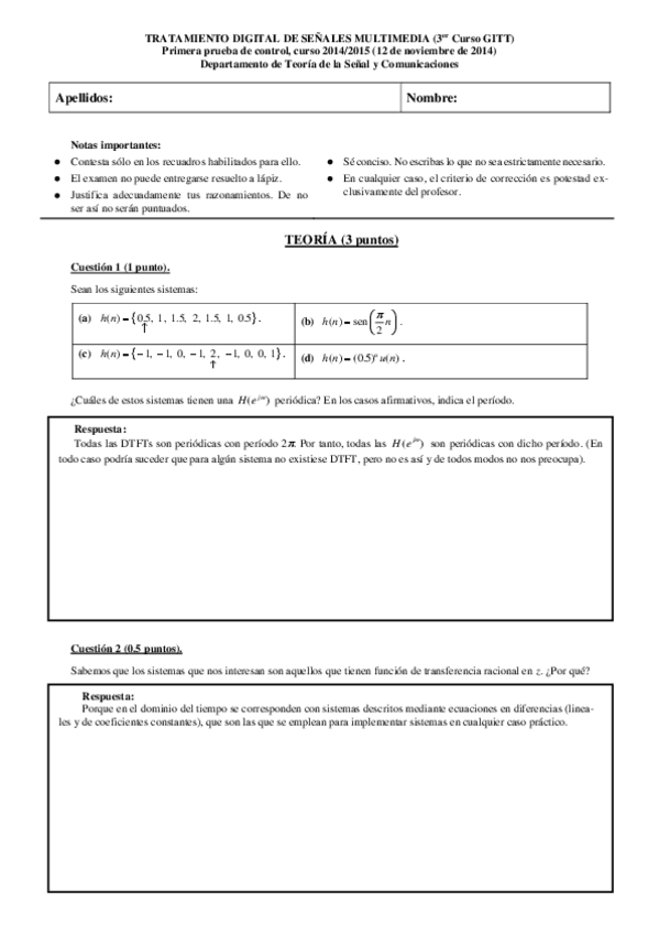 He publicado nuevos examenes de 3º Tratamiento Digital de Señales Multimedia: (TDSM) Curso 2014-2015 primer control.pdf