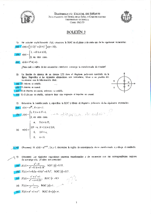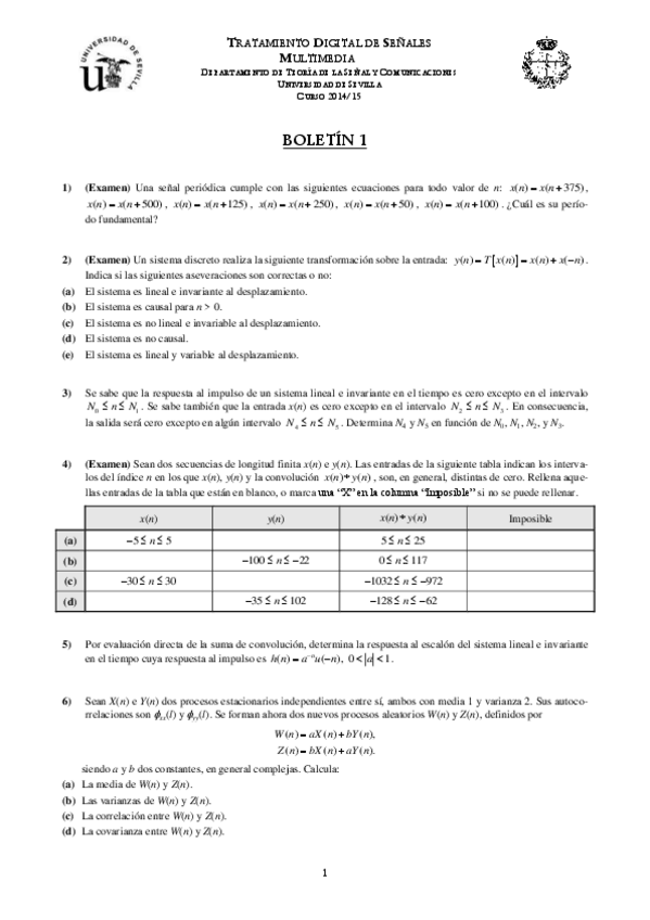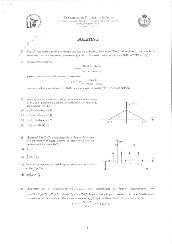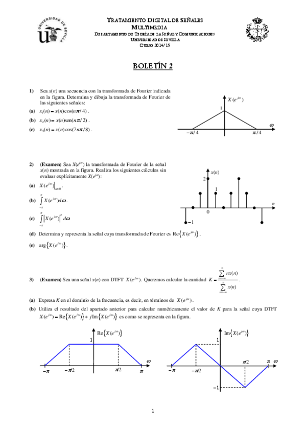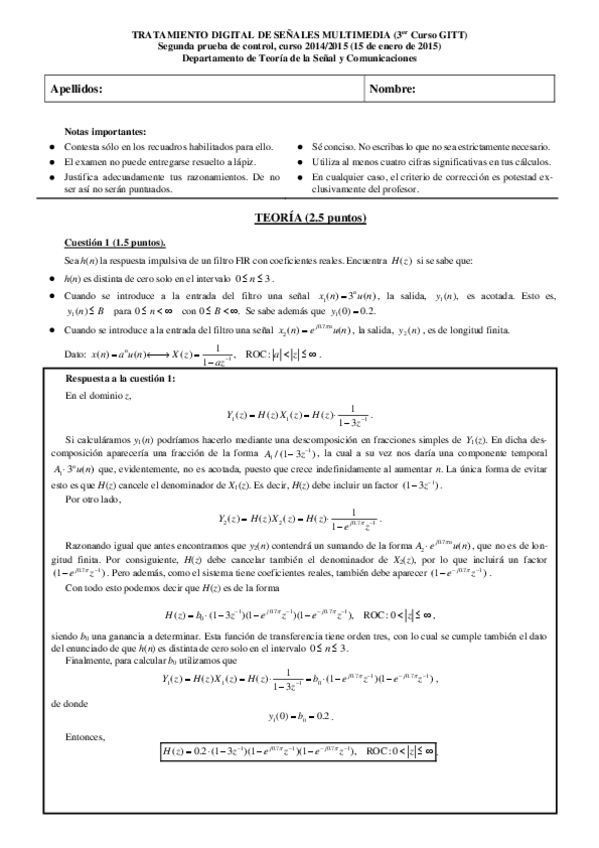 He publicado nuevos examenes de 3º Tratamiento Digital de Señales Multimedia: (TDSM) Curso 2014-2015 segundo control.pdf