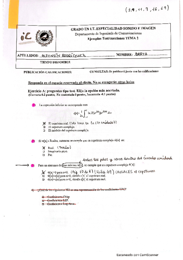 He publicado nuevos ejercicios de 4º Tratamiento Digital de Voz e Imagen: Cuestiones tipo examen CORREGIDAS VOZ