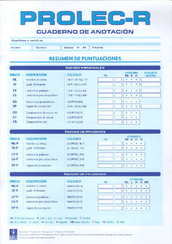He publicado nuevos apuntes de 4º TRATAMIENTO PSICOLÓGICO DE LOS TRASTORNOS DE LA LECTURA, LA ESCRITURA Y EL CÁLCULO: PROLEC-R-manual.pdf