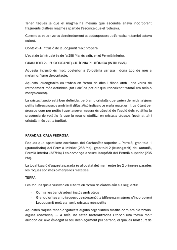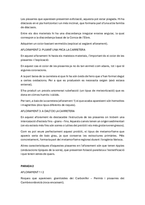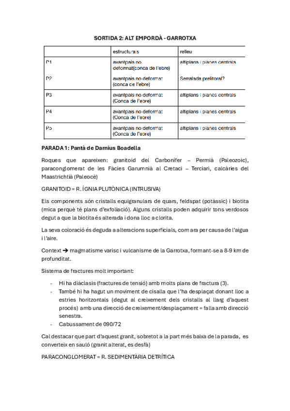 Aquí están todos los apuntes que tenía en la libreta de campo (curso 2024-2025) de la salida 2 (Alt Empordà i Garrotxa). No contiene dibujos, solo información. Y ALGUNAS DE LAS POSIBLES PREGUNTAS DEL EXAMEN FINAL RESPUESTAS AL FINAL DEL DOCUMENTO.