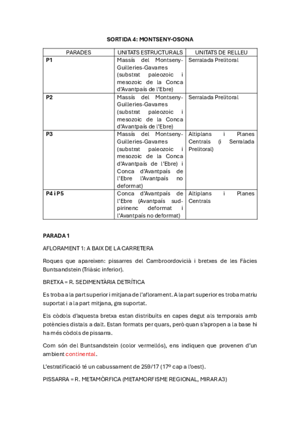 Aquí están todos los apuntes que tenía en la libreta de campo (curso 2024-2025) de la salida 4 (Montseny-Osona). No contiene dibujos, solo información. Y ALGUNAS DE LAS POSIBLES PREGUNTAS QUE PUEDEN SALIR EN EL EXAMEN.
