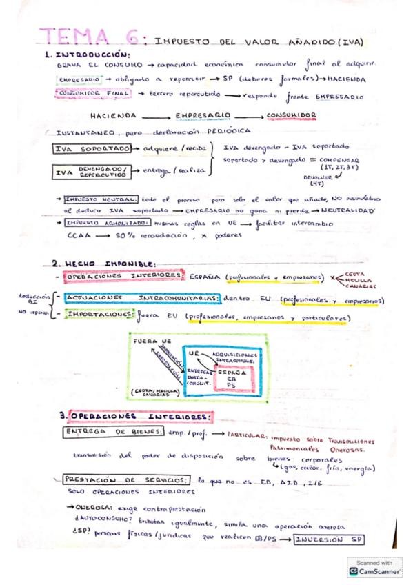 Apuntes tema 1 y 2 sobre el IVA con preguntas tipo test