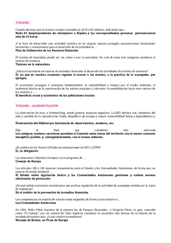 He publicado nuevos examenes de 4º Turismo y Ocio en El Medio Natural: Test-Bloque-I-y-II.pdf