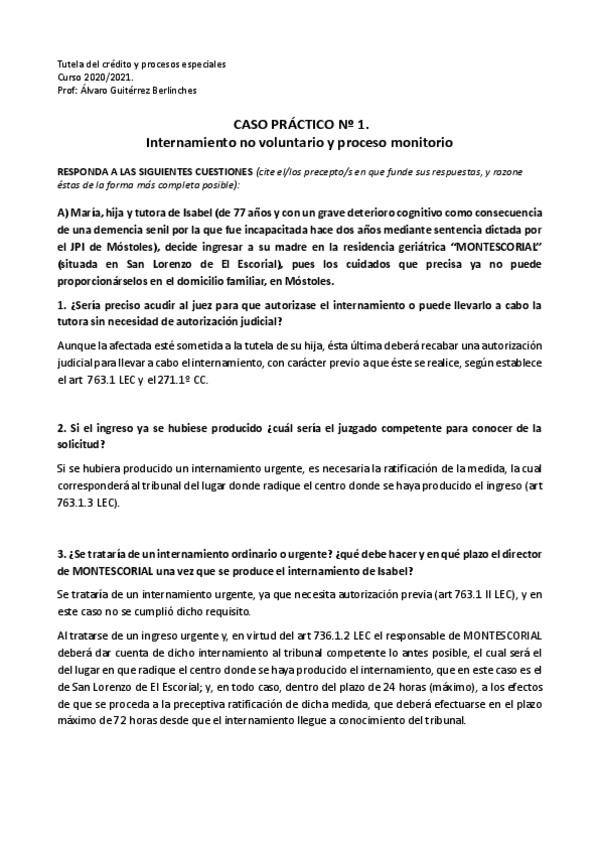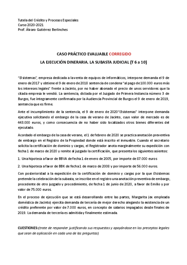 He publicado nuevos practicas de 4º Tutela del Crédito y Procesos Especiales: DERECHO.pdf