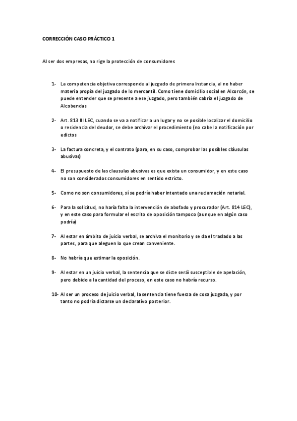 Casos prácticos Tutela del Crédito