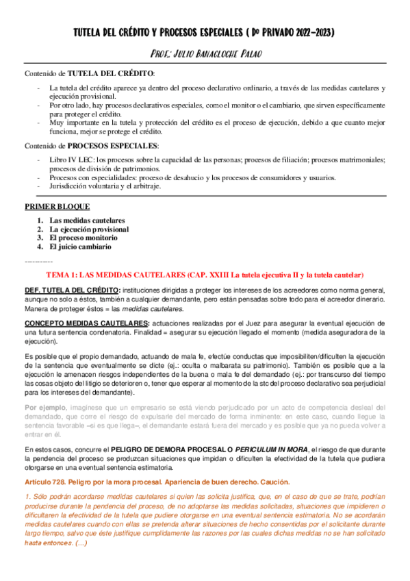 He publicado nuevos apuntes de 4º Tutela del Crédito y Procesos Especiales: APUNTES TUTELA.pdf