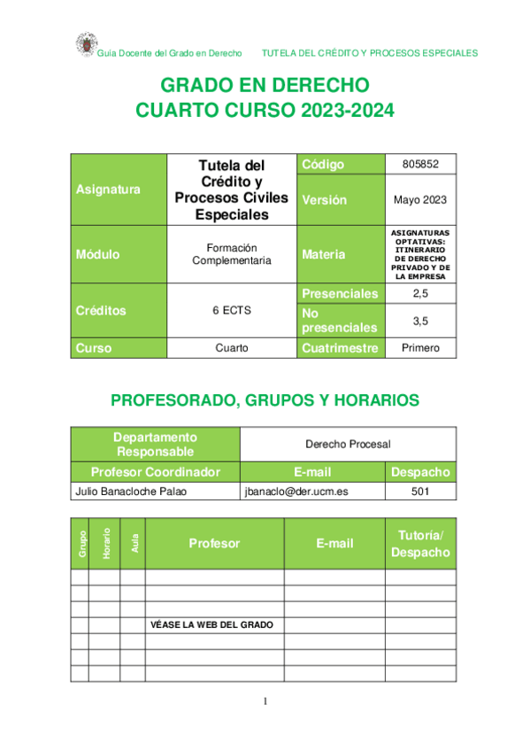 He publicado nuevos otros de 4º Tutela del Crédito y Procesos Especiales: GUIA-DOCENTE-Tutela-del-Credito-y-Procesos-Especiales.pdf