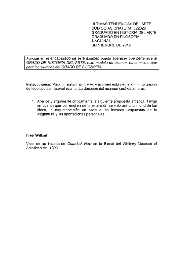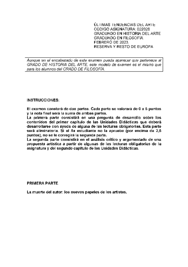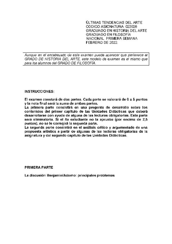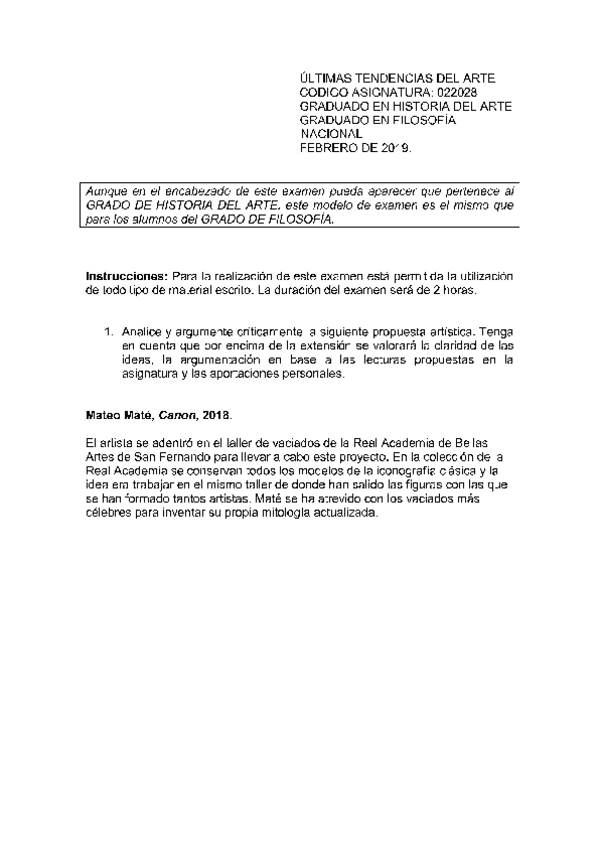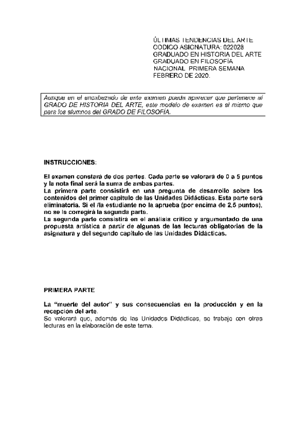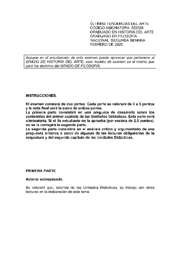 He publicado nuevos examenes de 1º Últimas Tendencias del Arte: Exámenes