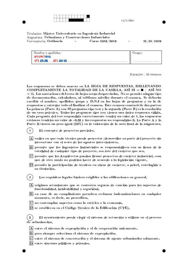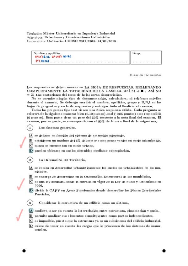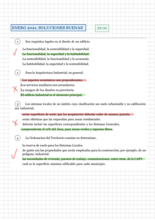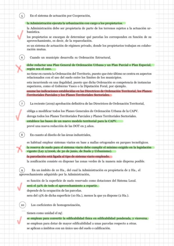 Tests de examen resueltos de urbanismos. Algunos casos practicos