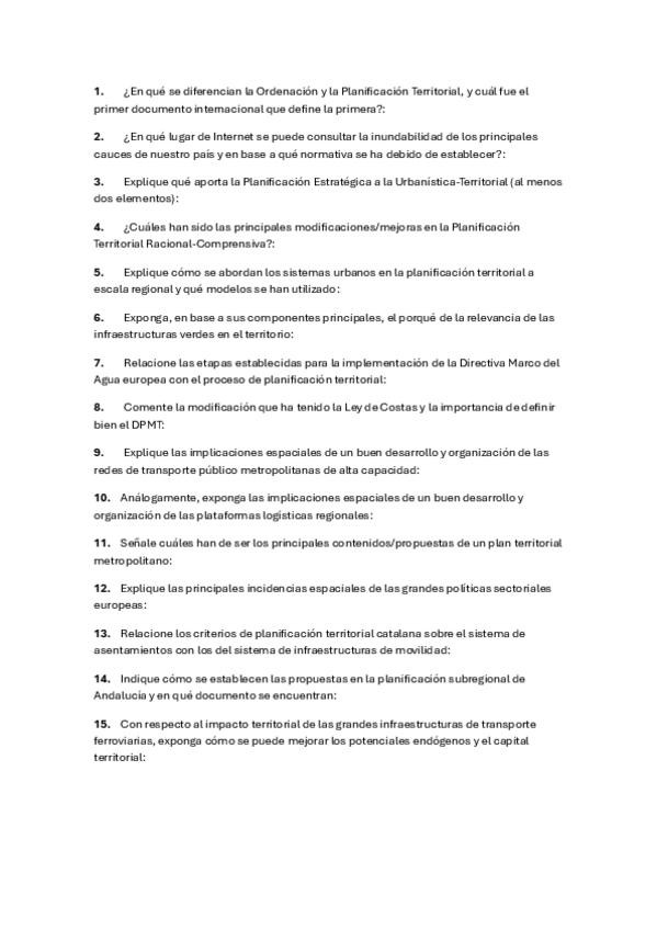 He publicado nuevos examenes de 3º Urbanística y Ordenación del Territorio: PREGUNTAS URBANÍSTICA.pdf