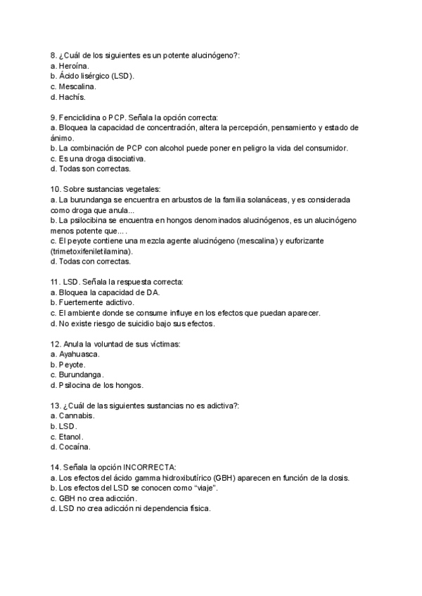 Preguntas Uso y Abuso de Fármacos y Drogas