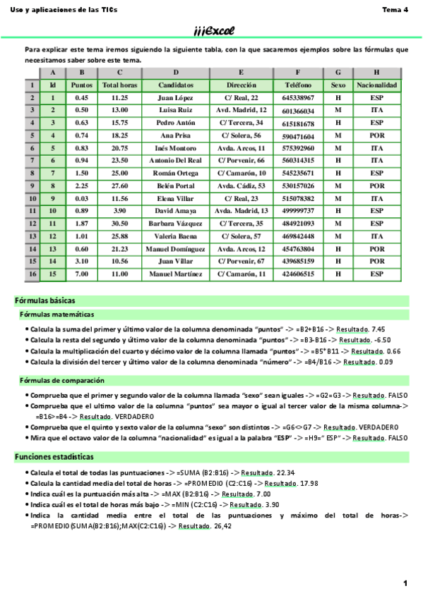 He publicado nuevos apuntes de 1º Uso y aplicación de las TICs: Formulario-excel completo.pdf