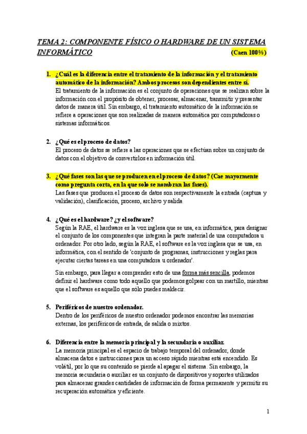 Apuntes del tema 2 en formas de preguntas, las cuáles aparecerán en el examen.