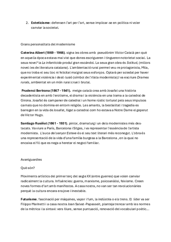 Parla del modernisme, autors com caterina albert o prudenci Bertrana. També de les avanguardies i de la poesia del segle XX
