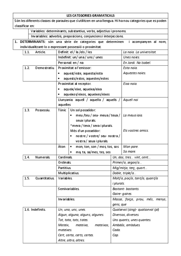 Valencià - Determinants i Articles