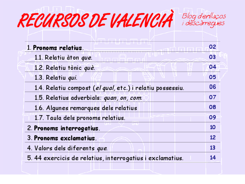 He publicado nuevos ejercicios de 4º Valenciano: Lengua y Literatura: Dossier-de-pronoms-relatius-amb-solucionari.pdf